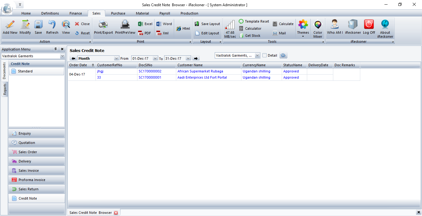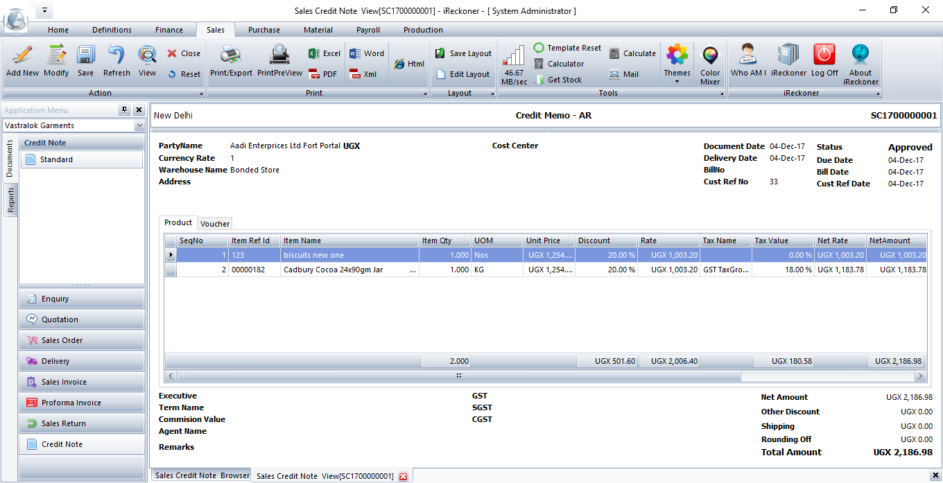 A Credit Note is a document notifying that a credit has been made to the customer account against the goods returned by the buyer. A credit note is issued in various situations to correct a mistake, such as when an invoice amount is overstated, correct discount rate is not applied or goods are returned due to some issue.